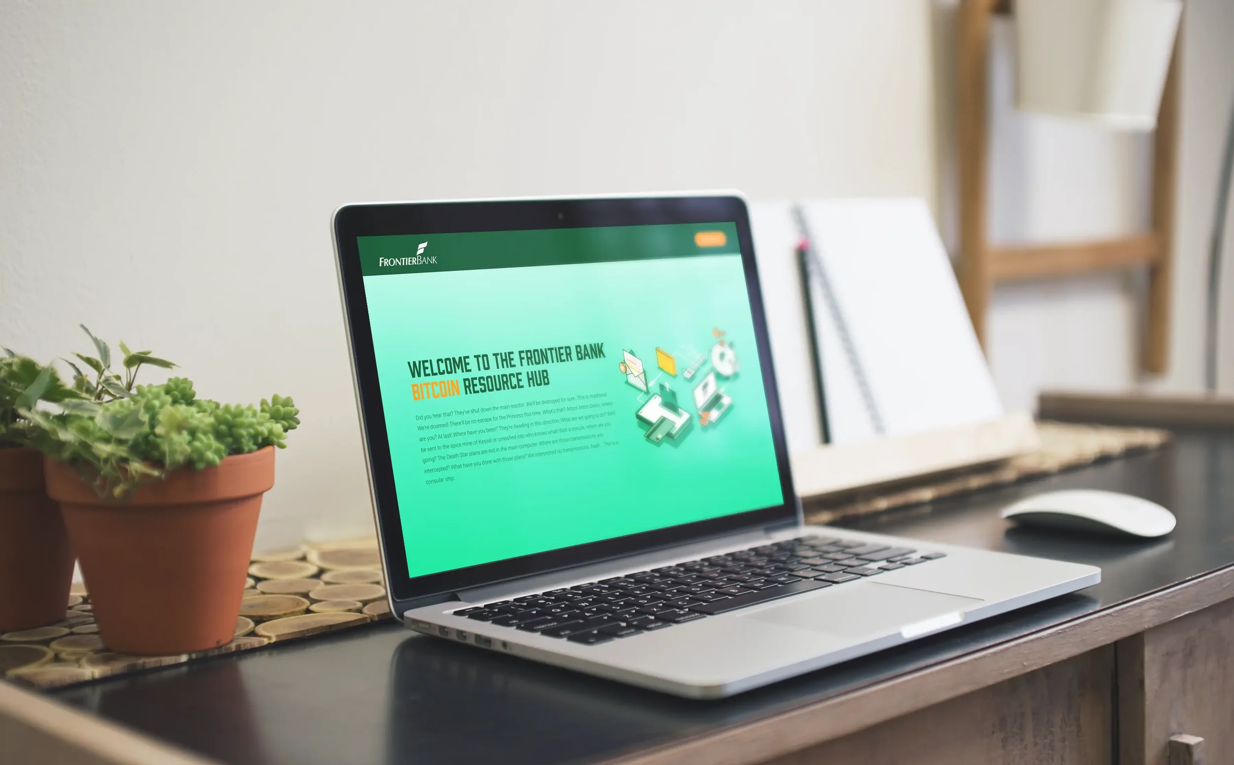 Our team executed a full creative rollout that included campaign development, website updates, hand-crafted illustrations, digital and social strategy, blogging, SEO/meta implementation, and integrated paid media across digital and traditional channels. Bold visuals paired with clear messaging transformed complex subject matter into accessible, engaging storytelling. By weaving together strategic direction, creative design, and a multi-channel distribution plan, we positioned Frontier Bank as both a pioneer and a reliable guide in the rapidly evolving world of banking and bitcoin.